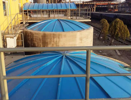 用于污水池和氧化溝的密封,防止臭氣散發(fā)。在蓋板上設排氣口,將臭氣用管道引出至除臭設備。